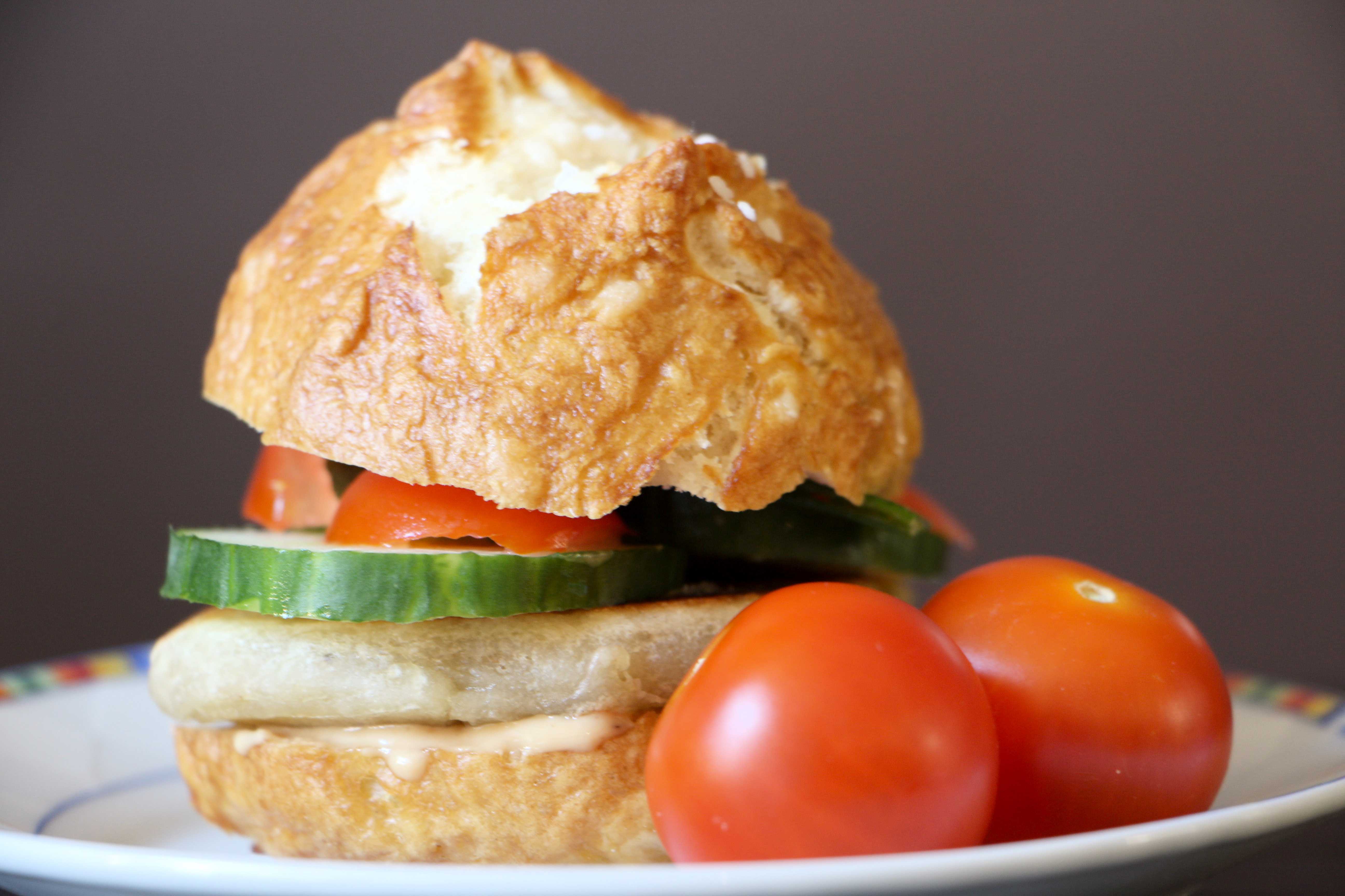 Wir hatten selbstgemachte Laugensemmeln vom Frühstück übrig und ganz