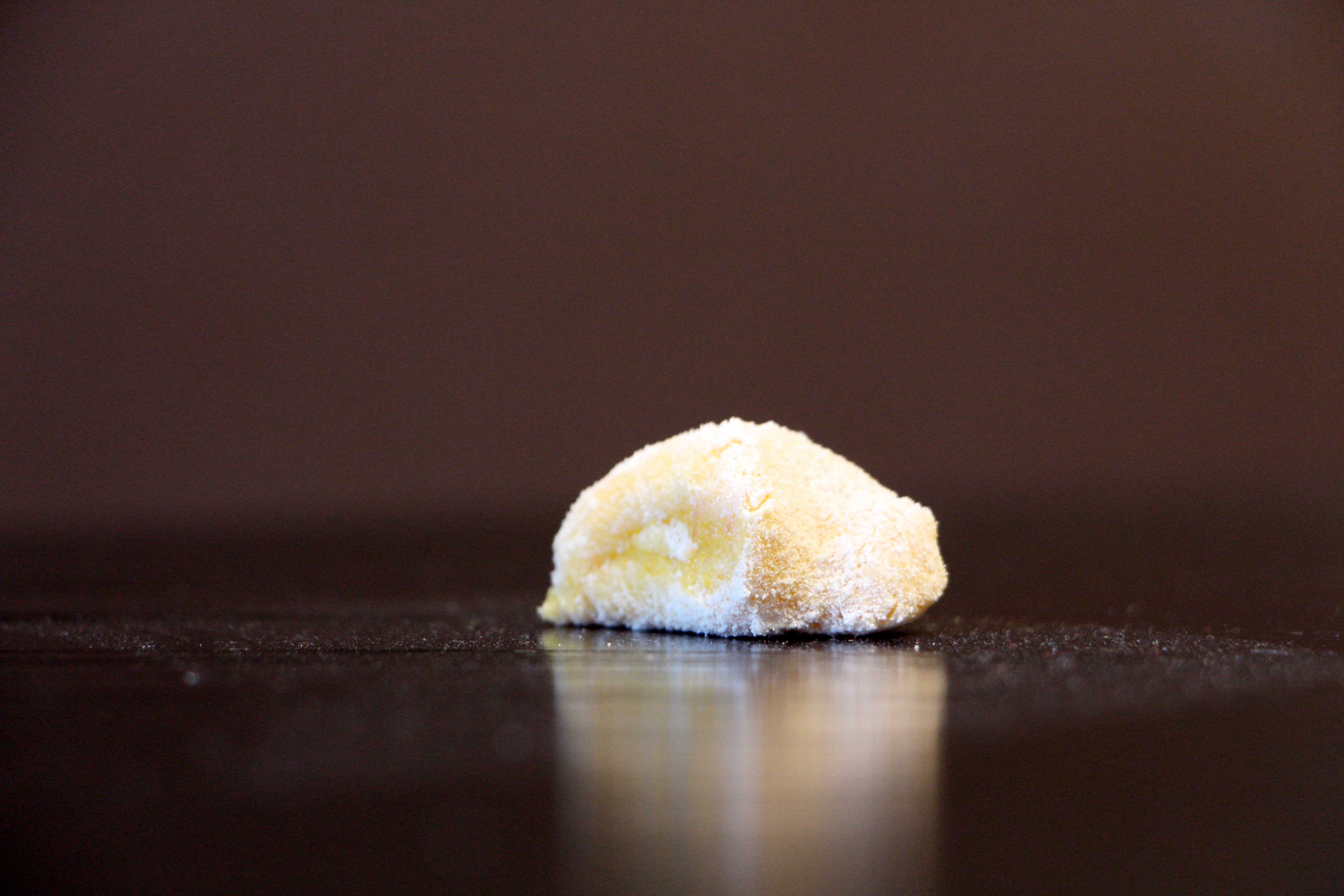 Den Gnocchiteig auf bemehlter Arbeitsfläche zu mehreren Rollen formen und jeweils 1cm lange Stücke abschneiden.