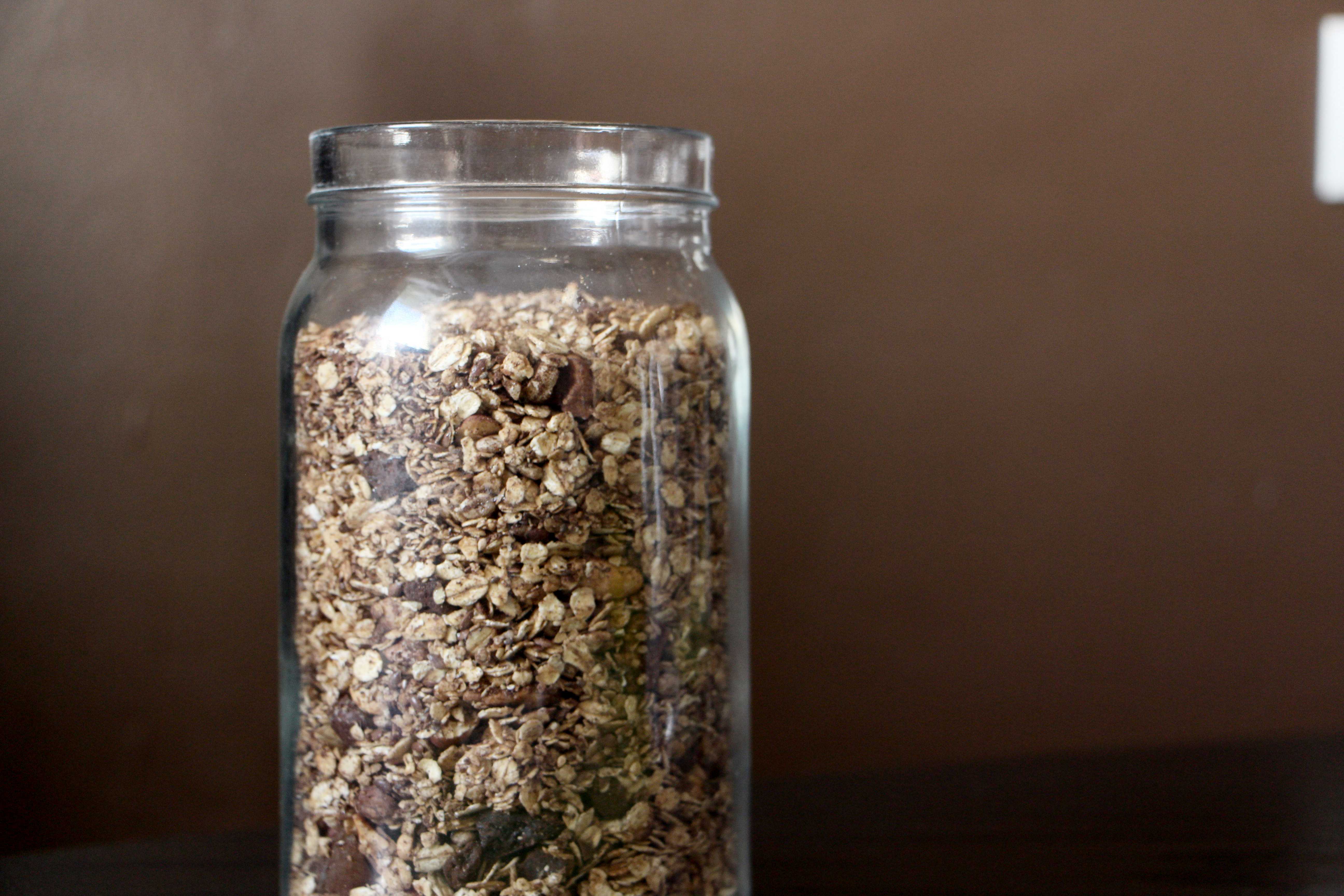 Dabei sind der Fantasie keine Grenzen gesetzt und am Ende kann ich mir sicher sein, dass alle Zutaten sorgfältig ausgesucht und “gesund” sind :) Es kann wirklich alles verwendet werden was schmeckt und glücklichmacht: Haferflocken oder Flocken anderer Art, gepuffter Amaranth, Nüsse, Samen, Trockenobst, Vanille, Kaffee, Kakao, Gewürze, Honig, Ahornsirup, gutes Öl, Schokostückchen, frisches Obstpüree, …