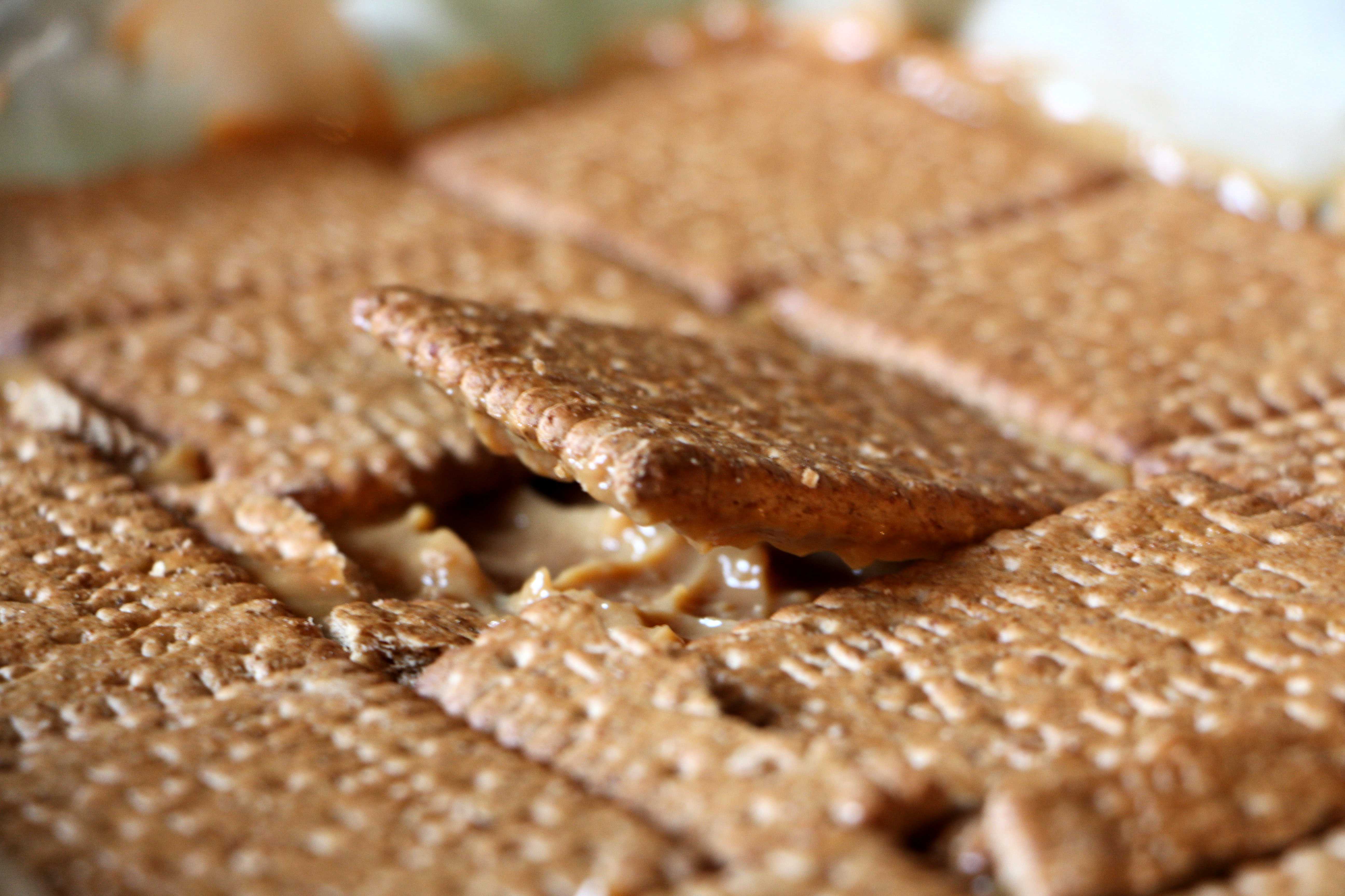 Nun zwei Schichten Butterkekse auf die Puddingcreme legen.