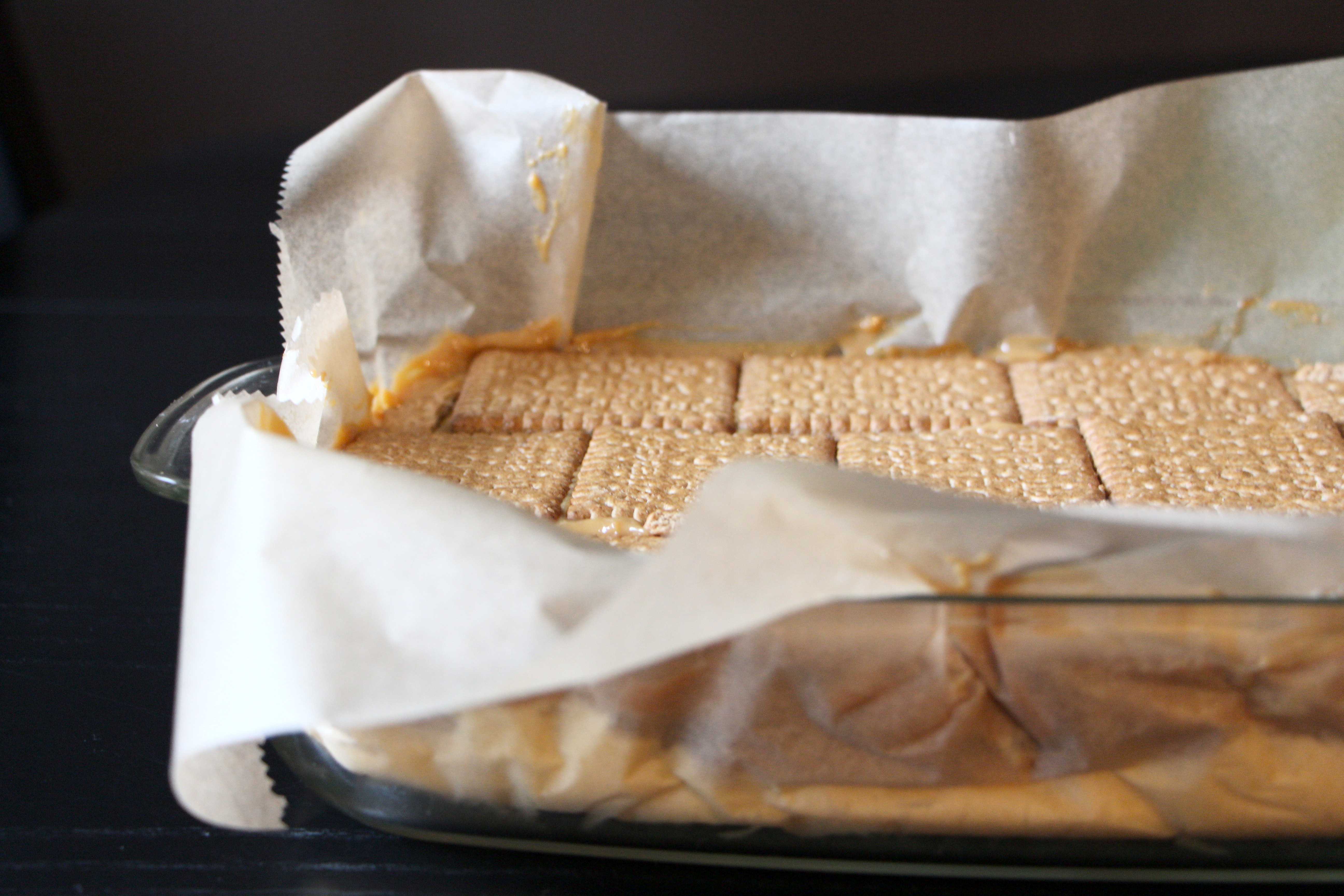 Die gesamte Toffeemasse darauf gleichmäßig verstreichen.