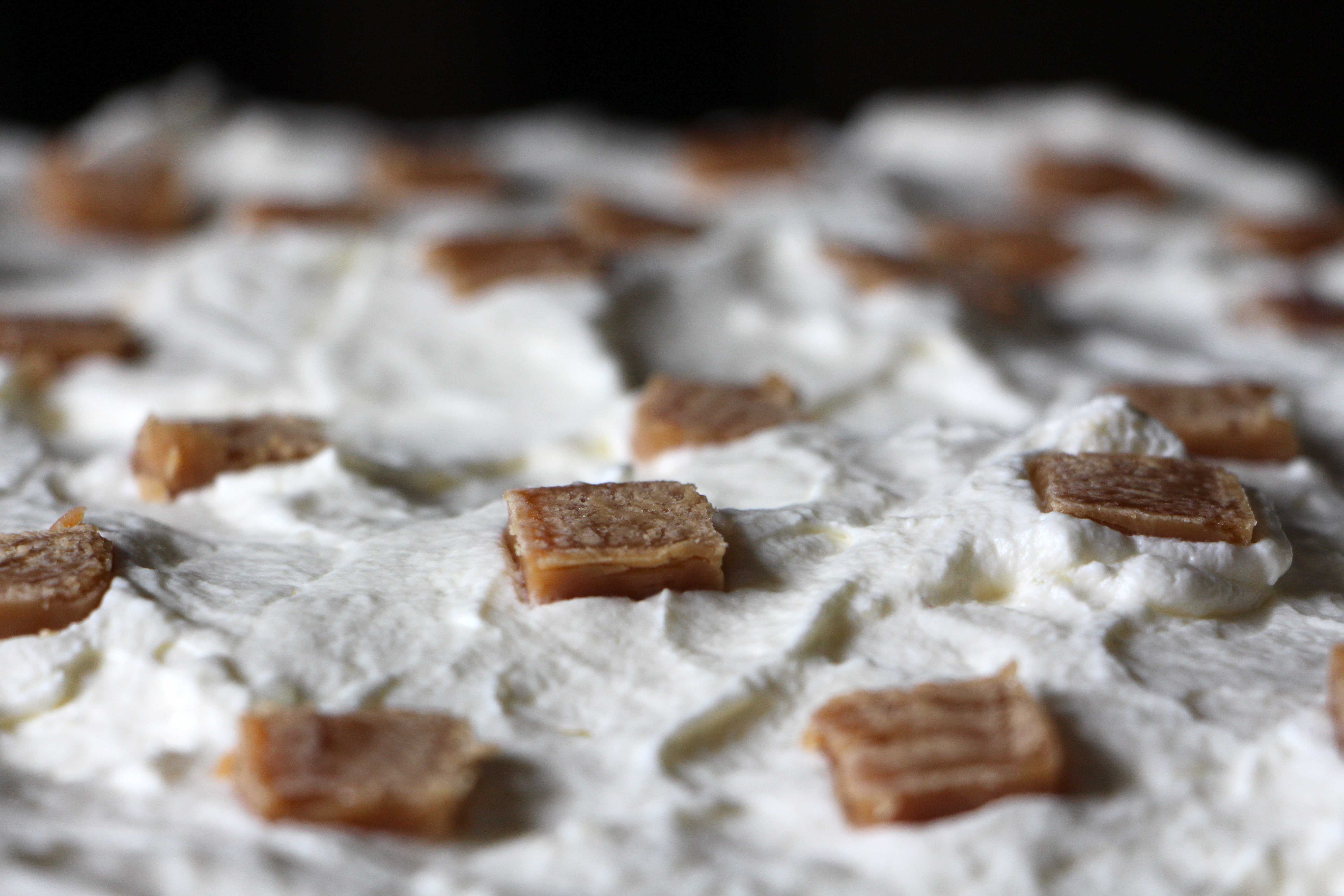 Vor dem Servieren den Kuchen evtl. noch mit Toffeebonbons dekorieren.